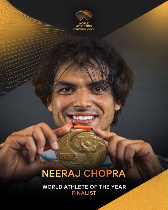 Indian star athlete Neeraj Chopra was shortlisted as a finalist for the men’s title of "World Athlete of the Year" by the World Athletics organization, along with four other athletes.