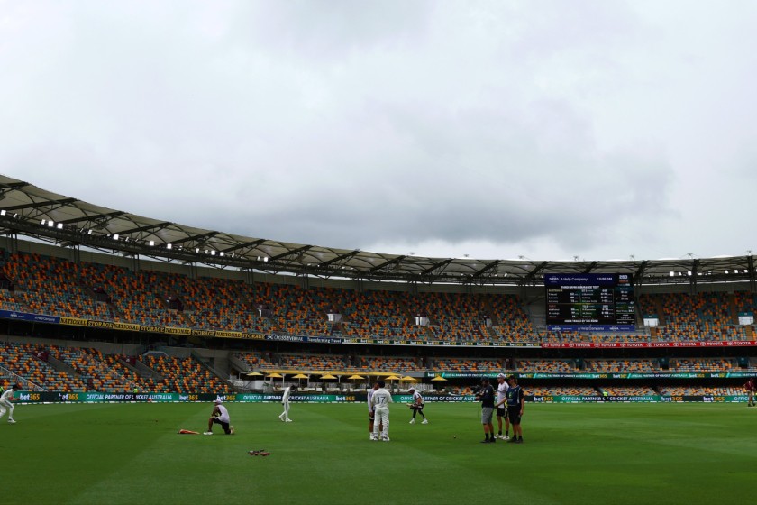 A huge band of storms halted Australia's bid for an unlikely win over India on the final day of the third Test in Brisbane on Dec. 18.