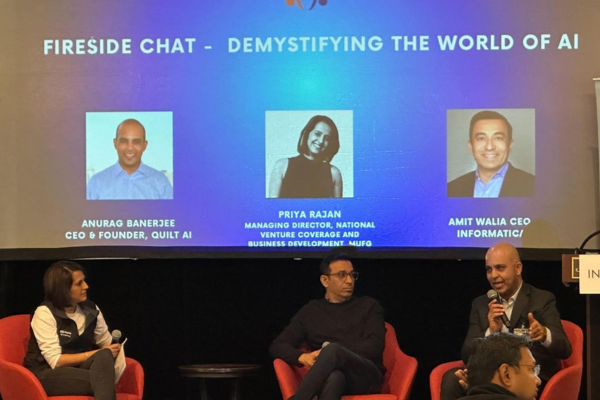 Fireside chat featuring Amit Walia, CEO of Informatica and Anurag Banerjee, CEO of Quilt AI. / (Image – X/@IndiasporaForum)