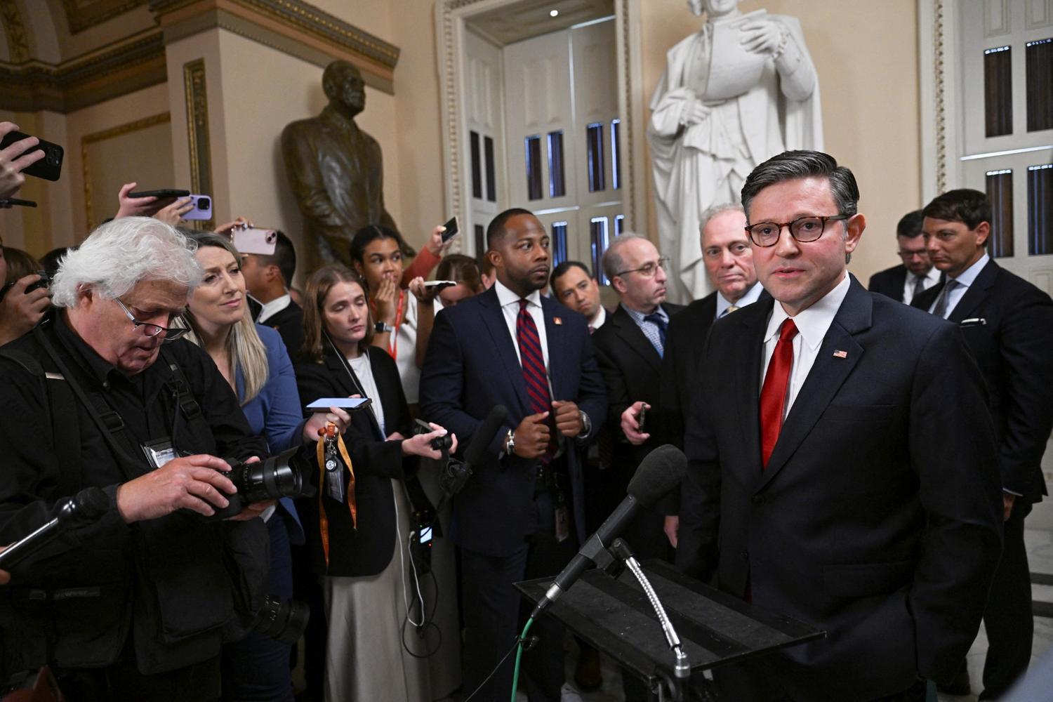 Speaker of the House Mike Johnson speaks to the press, as Republican lawmakers struggle to pass U.S. President Donald Trump's sweeping spending and tax bill, on Capitol Hill, in Washington, D.C., U.S., July 2, 2025. / REUTERS/Annabelle Gordon