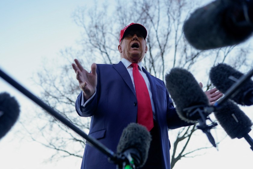 U.S. President Donald Trump speaks with members of the media on the South Lawn before boarding Marine One at the White House, in Washington, D.C., U.S., February 28, 2025. REUTERS/Nathan Howard / Reuters