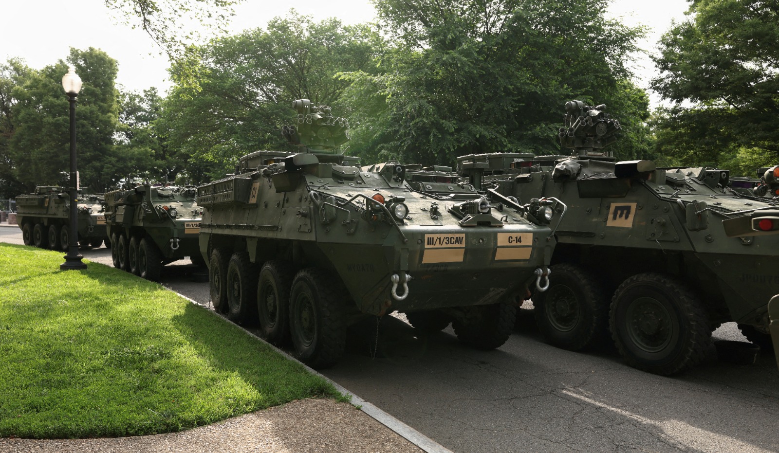 Stryker combat vehicles are parked in West Potomac Park ahead of the upcoming U.S. Army 250th anniversary celebration parade in Washington, D.C., U.S., June 10, 2025. / REUTERS/Kevin Lamarque