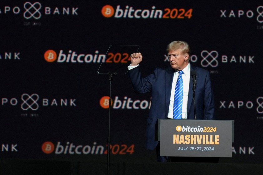 Republican presidential nominee and former U.S. President Donald Trump gestures at the Bitcoin 2024 event in Nashville, Tennessee, U.S., July 27, 2024. REUTERS/Kevin Wurm/File Photo / Reuters