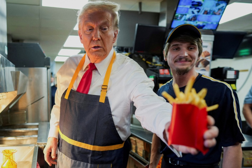 Trump hands out french fries in Pennsylvania, Harris...