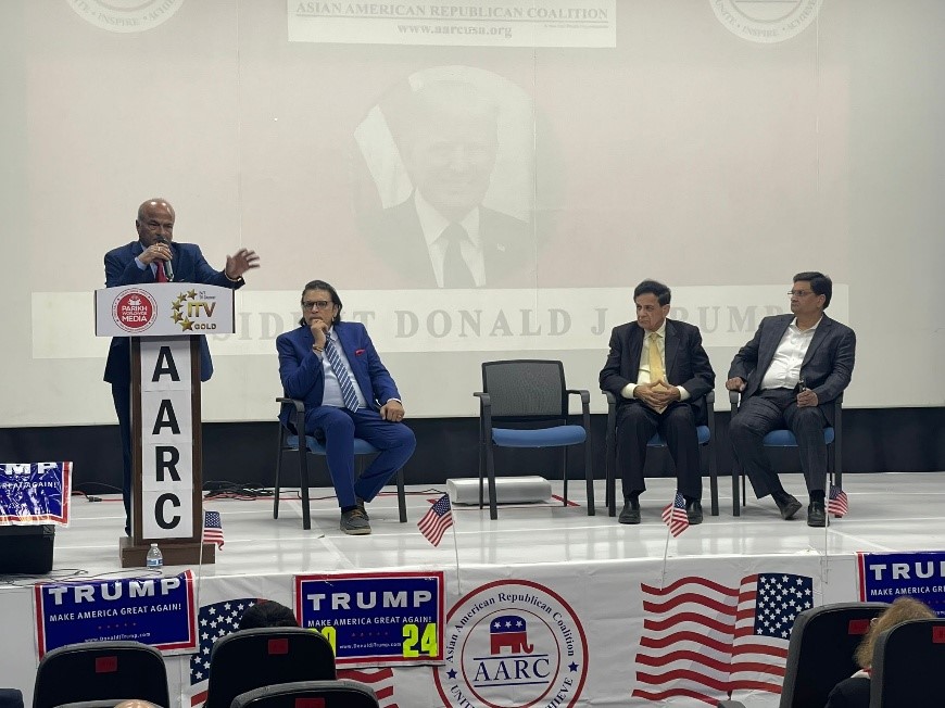 Hemant Bhatt AARC- founder and chairman addressing the event / AARCIn his speech, Bhatt said that the state of America currently is different from four years ago, when it was under the Trump administration. Citing rising inflation, heightened cost of living, lack of public safety and the border crisis, Bhatt urged the need to bring the community into the Republican fold.