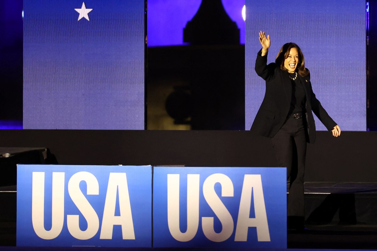 Democratic presidential nominee U.S. Vice President Kamala Harris waves on stage during a campaign rally in Philadelphia, Pennsylvania, U.S., November 4, 2024. / Reuters/Hannah Mckay