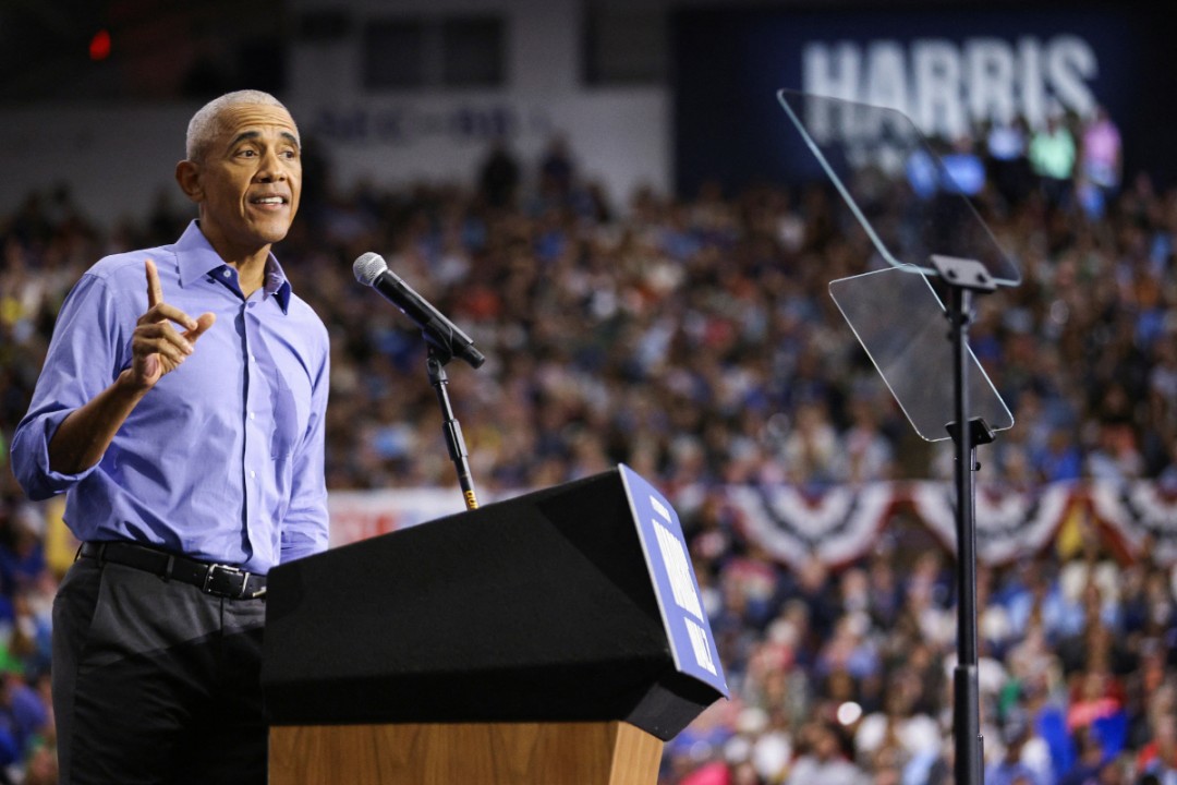 Former U.S. President Barack Obama speaks during a campaign event in support of Democratic presidential nominee and U.S. Vice President Kamala Harris in Pittsburgh, Pennsylvania, U.S., October 10, 2024. REUTERS/Quinn Glabicki / Reuters
