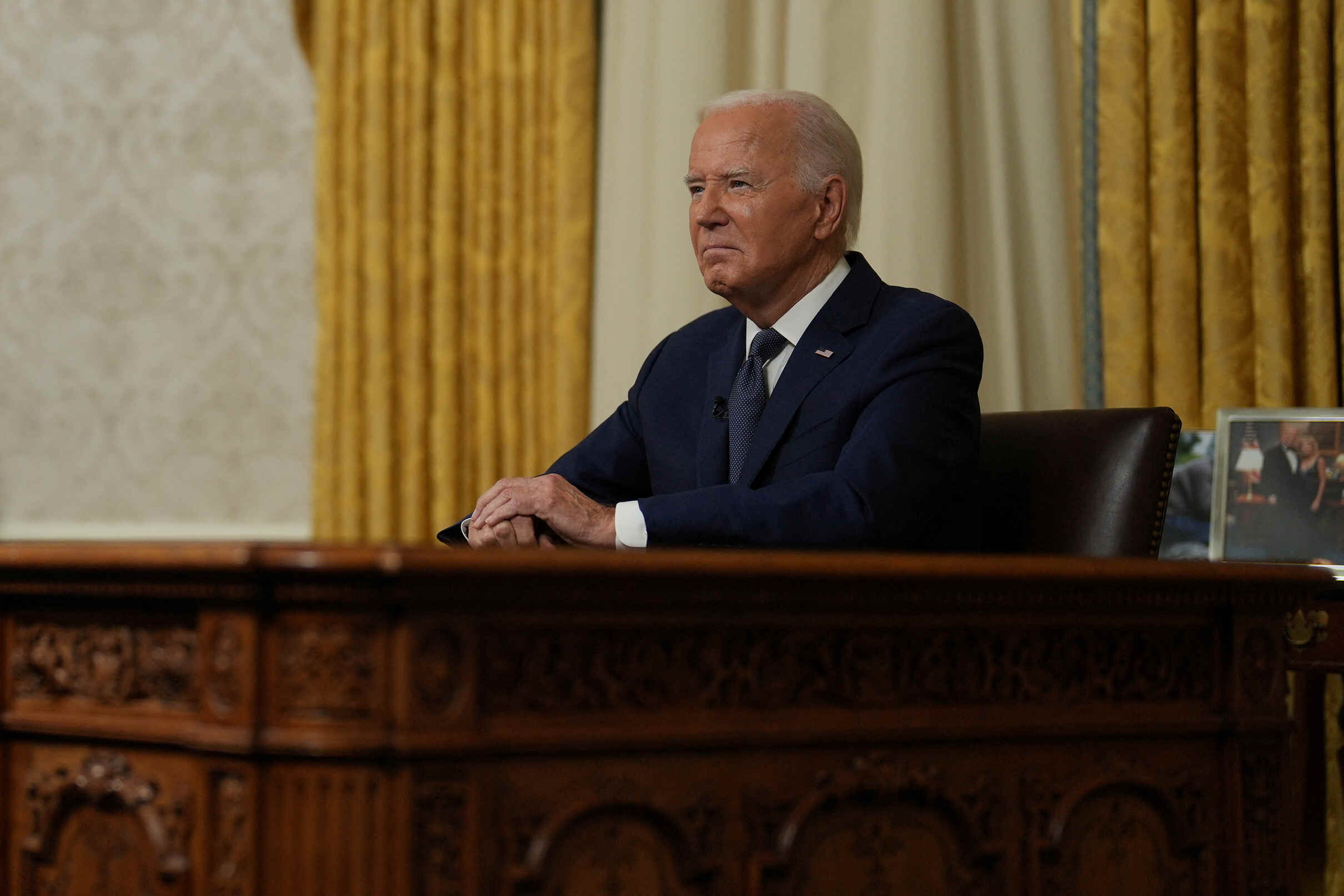 U.S. President Joe Biden delivers an address to the nation from the Oval Office of the White House in Washington, DC on July 14, 2024. / Erin Schaff/Pool via REUTERS/File Photo