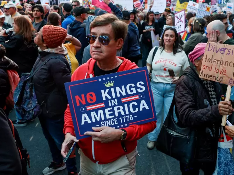 People attend a "No Kings" protest against U.S. President Donald Trump's policies, in Times Square in New York City, U.S., October 18, 2025. / REUTERS/Shannon Stapleton