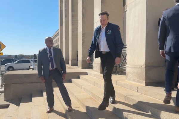 Elon Musk leaves from the Pentagon in Washington, D.C., U.S., March 21, 2025 in this screengrab obtained from a video. / REUTERS/Idrees Ali