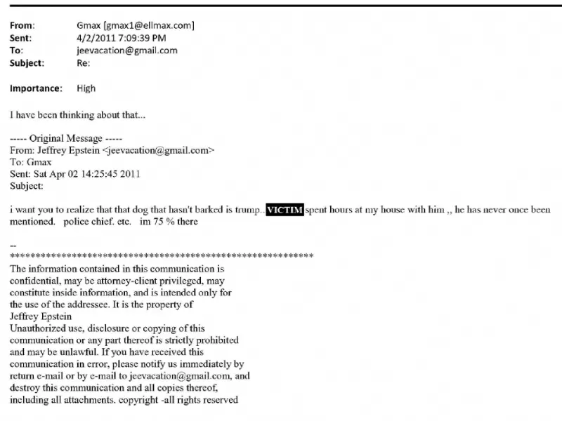 Among the exchanges is a 2019 email to Wolff in which Epstein said that Trump "knew about the girls as he asked ghislaine to stop," and a 2011 message to Maxwell from Epstein asserting that Trump had "spent hours at my house" with one of his victims, whose name is redacted.