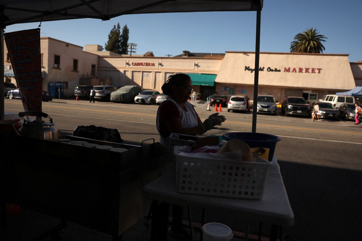 Juan Ibarra stands outside his fruit and vegetable outlet in Los Angeles' vast fresh produce market, the place in the city center where Hispanic restaurateurs, street vendors and taco truck operators buy supplies every day.