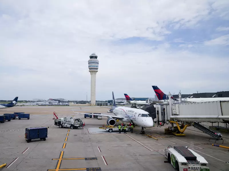FILE PHOTO: The air traffic control tower is seen from the Hartsfield-Jackson Atlanta International Airport terminal, in Atlanta, Georgia, U.S. May 15, 2025. / REUTERS/Megan Varner/File Photo