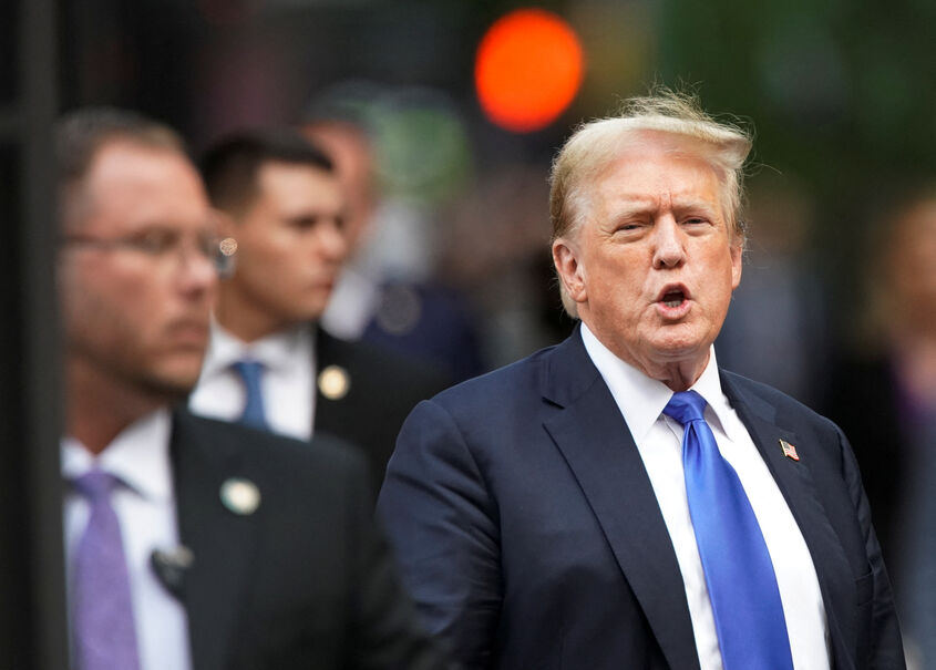 Former US President Donald Trump talks as he walks outside Trump Tower after the verdict in his criminal trial on May.30. / Reuters/Eduardo Munoz
