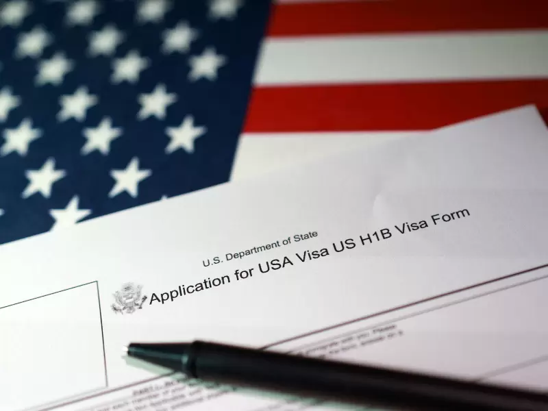 A U.S. flag and a U.S. H-1B Visa application form are seen in this illustration taken, September 22, 2025. / REUTERS/Dado Ruvic/Illustration