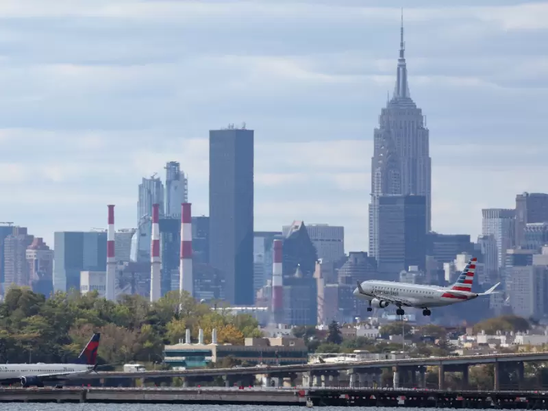 Commercial airplanes land and prepare to take off at New York's LaGuardia Airport in the borough of Queens, New York City, U.S., October 10, 2025. / REUTERS/Shannon Stapleton
