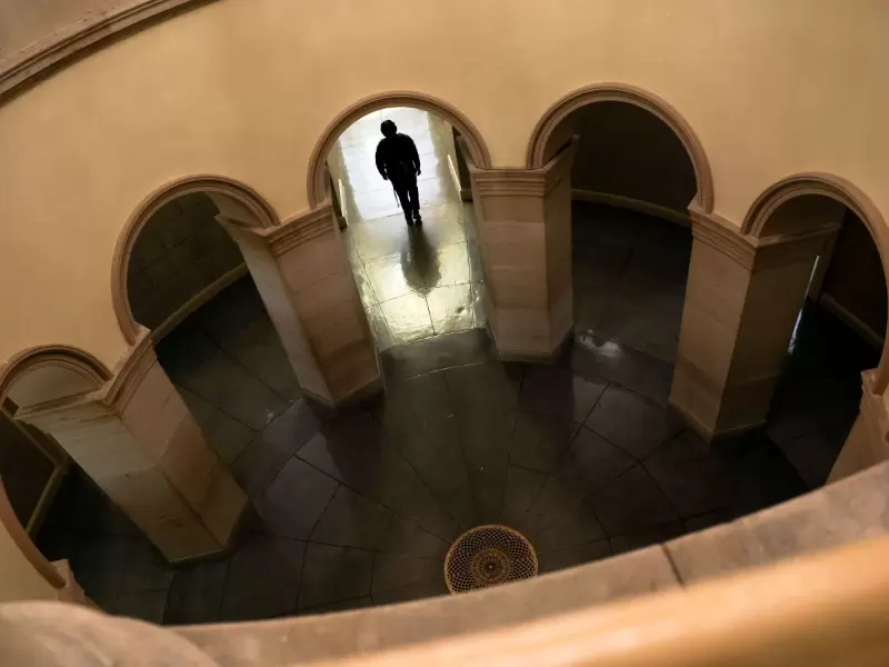 FILE PHOTO: A worker walks through a hallway at the U.S. Capitol in the hours before a partial government shutdown in Washington, D.C., U.S., September 30, 2025. / REUTERS/Jonathan Ernst/File Photo