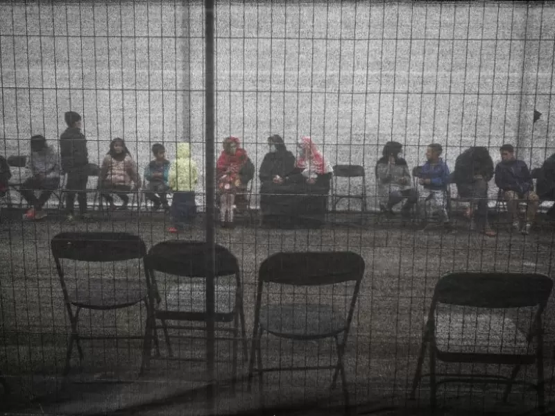 Afghan refugees queue outside a distribution and donation center at Liberty Village on Joint Base McGuire-Dix-Lakehurst in New Jersey, U.S., December 2, 2021. / REUTERS/Barbara Davidson/Pool