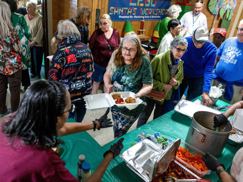 Senior citizens receive a hot meal at the Roosevelt Community Center as food banks across the country, already strained by rising demand, say they will have less food to distribute because of federal funding cuts and pauses by the Trump administration, in Charleston, West Virginia, U.S., March 19, 2025. / REUTERS/Evelyn Hockstein/File Photo