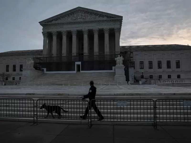 FILE PHOTO: A U.S. Supreme Court Police canine unit patrols in front of the court building at the start of the day in Washington, D.C., U.S., January 9, 2026. / REUTERS/Jonathan Ernst/File Photo