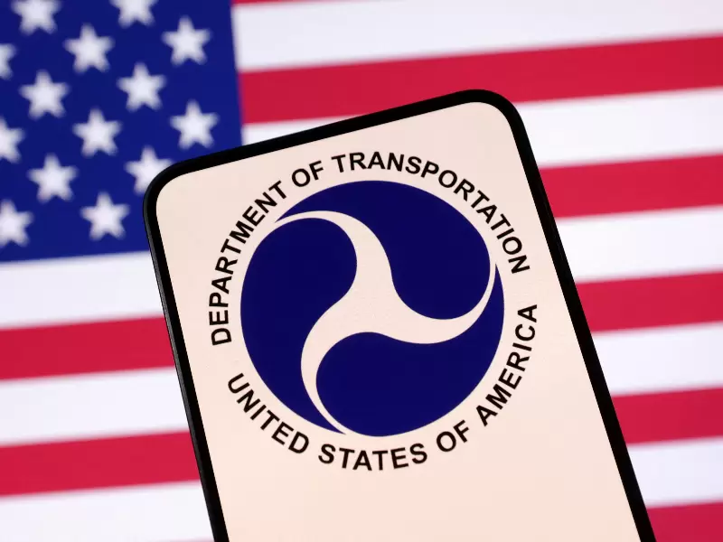 United States Department of Transportation logo and U.S. flag are seen in this illustration taken April 23, 2025. / REUTERS/Dado Ruvic/Illustration