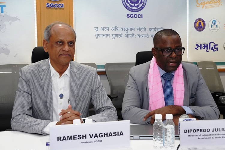 ધી સધર્ન ગુજરાત ચેમ્બર ઓફ કોમર્સ એન્ડ ઈન્ડસ્ટ્રીના SGCCI ગ્લોબલ કનેકટ મિશન ૮૪ અંતર્ગત આફ્રિકન દેશ બોટ્સ્વાનાના હાઇ કમિશનની સાથે ઇન્ટરેકટીવ બીટુબી મિટીંગનું આયોજન કરવામાં આવ્યું હતું. જેમાં બોટ્સ્વાના હાઇ કમિશનના હાઇ કમિશ્નર હીઝ એકસલન્સી ગીલબર્ટ શિમાને મંગોલે અને બોટ્સ્વાનાના ઇન્વેસ્ટમેન્ટ એન્ડ ટ્રેડ સેન્ટરના ટ્રેડ એટેચીના ડાયરેકટર શ્રી દિપોપેગો જુલિયસ શેકો તથા સુરતના ઉદ્યોગ સાહસિકો ઉપસ્થિત રહયા હતા.