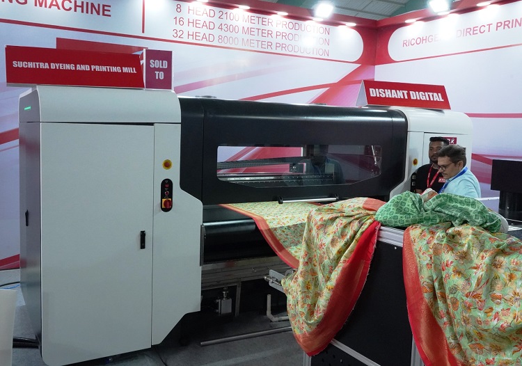 આ ઉપરાંત એકઝીબીશનમાં પ્રદર્શિત કરવામાં આવી રહેલી અદ્યતન ડિજીટલ પ્રિન્ટીંગ મશીન અને ફયુઝીંગ મશીનો પણ સ્થળ પર વેચાઇ ગયા હતા. રૂપિયા ૧૩ લાખની કિંમતની ૮ હેડવાળી મશીન ર૪ કલાકમાં ૪પ૦૦ મીટર કાપડ પર ડિજીટલ પ્રિન્ટીંગ કરે છે, જ્યારે રૂપિયા ર૬.પ૦ લાખની કિંમતની ૧૬ હેડવાળી ડિજીટલ પ્રિન્ટીંગ મશીનરી ર૪ કલાકમાં ૧૦ હજાર મીટર કાપડ પર ડિજીટલ પ્રિન્ટ કરે છે. એક સ્ટોલ પર મુકાયેલી આ ચારેય મશીનરીઓનું સ્થળ પર વેચાણ થઇ ગયું હતું.