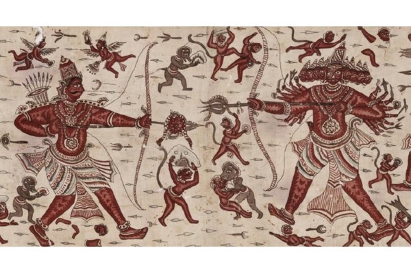 રામાયણ ટેક્સટાઇલ (વિગત). કોરોમેન્ડલ કોસ્ટ, ભારત, ઇન્ડોનેશિયન બજાર માટે, 18મી સદી. કપાસ, હાથથી દોરેલું અને મોર્ડન્ટ-ડાઇડ. / The Museum of Fine Arts, Houston