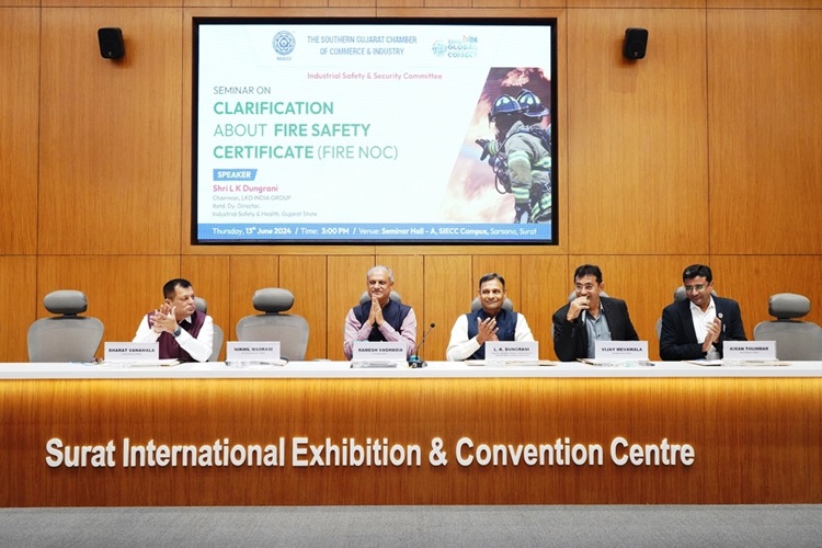 ધી સધર્ન ગુજરાત ચેમ્બર ઓફ કોમર્સ એન્ડ ઈન્ડસ્ટ્રી દ્વારા સેમિનાર હોલ– એ, સરસાણા, સુરત ખાતે ‘ફાયર સેફટી સર્ટિફિકેટ (NOC)ની સ્પષ્ટતા’ અંગે સેમિનાર યોજાયો હતો. જેમાં ગુજરાત સરકારના ઈન્ડસ્ટ્રીયલ સેફટી એન્ડ હેલ્થ વિભાગના નિવૃત્ત ડેપ્યુટી ડાયરેકટર અને LKD ઈન્ડિયા ગૃપના ચેરમેન શ્રી એલ.કે. ડુંગરાણીએ ઉદ્યોગ સાહસિકોને ફાયર સેફટી સર્ટિફિકેટની વિસ્તૃત માહિતી આપી હતી.