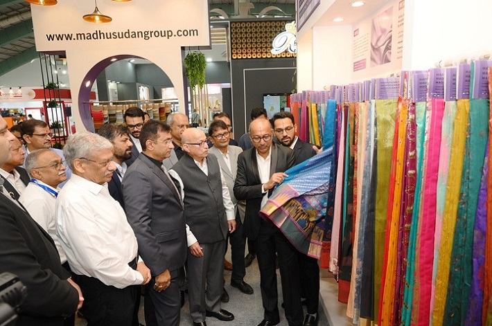 શુક્રવાર, તા. ૯ ઓગષ્ટ, ર૦ર૪ના રોજ સવારે ૧૦:૦૦ કલાકે યાર્ન એક્ષ્પોનો ઉદ્ઘાટન સમારોહ યોજાયો હતો. જેમાં મુખ્ય મહેમાન અને ઉદ્ઘાટક તરીકે રિલાયન્સ ઇન્ડસ્ટ્રીઝ લિમિટેડના સિનિયર વાઇસ પ્રેસિડેન્ટ શ્રી જે. રઘુનાથજી ઉપસ્થિત રહયા હતા. જ્યારે સાંજુ પ્રિન્ટ્સ પ્રા.લિ.ના મેનેજિંગ ડાયરેકટર શ્રી સાંવર રાજકુમાર બુધિયા અને કોરીયા ટ્રેડ – ઇન્વેસ્ટમેન્ટ પ્રમોશન એજન્સીના ડાયરેકટર જનરલ શ્રી કયુ નામ કીમે અતિથિ વિશેષ તરીકે સ્થાન શોભાવ્યું હતું. આ મહેમાનોના હસ્તે યાર્ન એક્ષ્પોનું ઉદ્ઘાટન કરવામાં આવ્યું હતું.