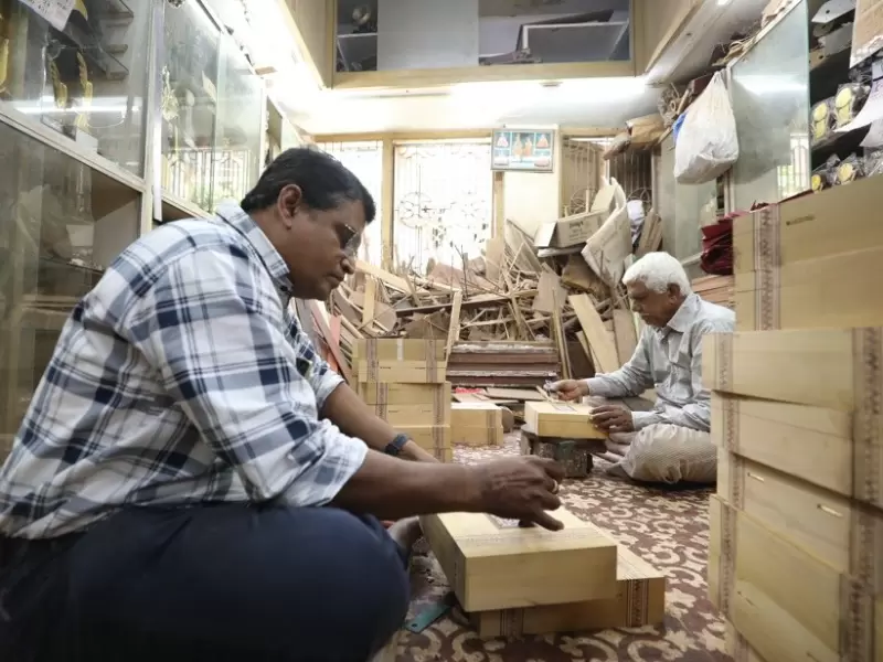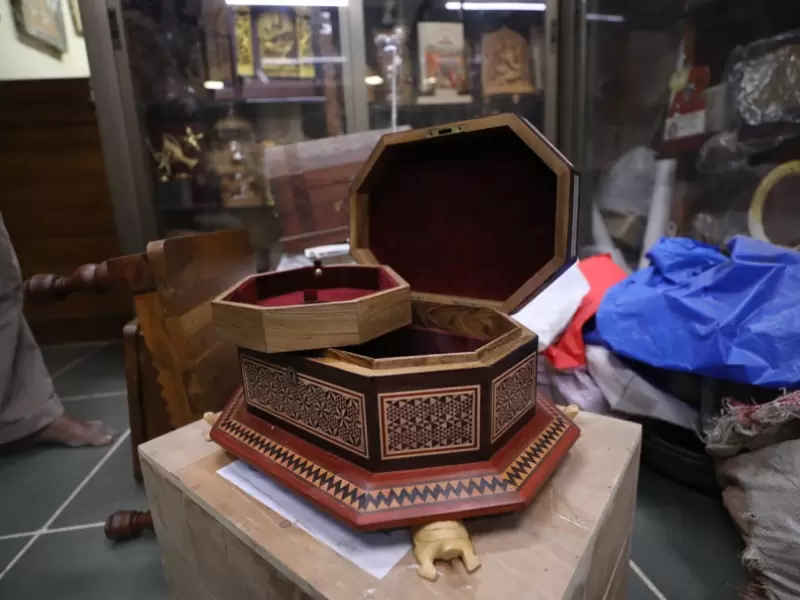 સાડેલી આર્ટએ લાકડાથી બનતા બોક્સ પર હાથ વડે બારીકાઈથી કરવામાં આવતી સુંદર અને આકર્ષક કલા છે. / માહિતી વિભાગ, ગુજરાત.