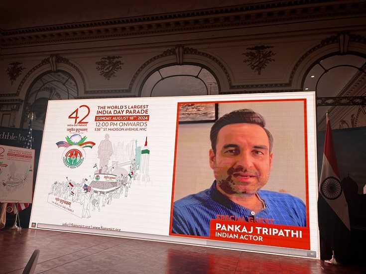 ફેડરેશન ઓફ ઇન્ડિયન એસોસિએશન્સ (એફઆઈએ) એ જાહેરાત કરી છે કે પ્રખ્યાત ભારતીય અભિનેતા પંકજ ત્રિપાઠી આ વર્ષની ભારત દિવસની પરેડમાં ગેસ્ટ ઓફ ઓનર રહેશે. ભારતની બહાર વિશ્વની સૌથી મોટી ભારતીય સ્વતંત્રતાની ઉજવણી તરીકે ઉજવાતો આ કાર્યક્રમ ઓગસ્ટ. 18 ના રોજ મેડિસન એવન્યુ, ન્યૂ યોર્ક ખાતે યોજાશે.