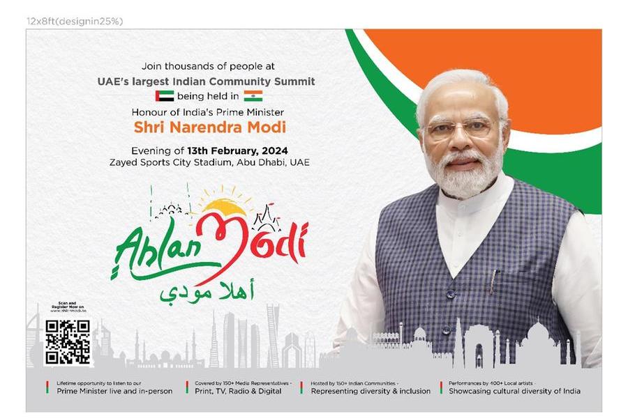 “અહલાન મોદી” નામની ઈવેન્ટ 13 ફેબ્રુઆરીએ અબુ ધાબીના સિટી સ્ટેડિયમ ઝાયેદ સ્પોર્ટ્સમાં યોજાવાની છે.