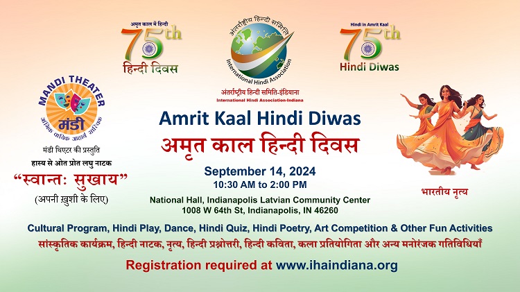આંતરરાષ્ટ્રીય હિન્દી સંગઠન-ઇન્ડિયાનાનું હિન્દી દિવસ વ્યવસ્થાપન 14 સપ્ટેમ્બર, 2024ના રોજ હિન્દી દિવસની 75મી વર્ષગાંઠની ભવ્ય ઉજવણીની જાહેરાત કરીને રોમાંચિત છે. આ મહત્વપૂર્ણ પ્રસંગ હિન્દી ભાષાના ભારતના સમૃદ્ધ ભાષાકીય અને સાંસ્કૃતિક વારસાને માન આપવા માટે એક મહત્વપૂર્ણ સીમાચિહ્નરૂપ છે.