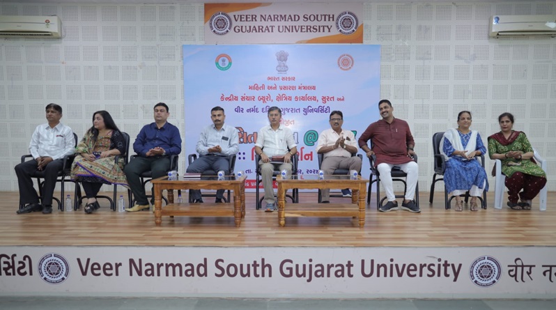 કેન્દ્રીય સંચાર બ્યુરો અને વીર નર્મદ યુનિવર્સિટીનાં સંયુક્ત ઉપક્રમે વિકસિત ભારત @2047 વિષય પર આયોજિત ચિત્ર પ્રદર્શનને VNSGUના કુલસચિવ ડૉ આર. સી. ગઢવીએ ખુલ્લું મૂક્યું હતું.