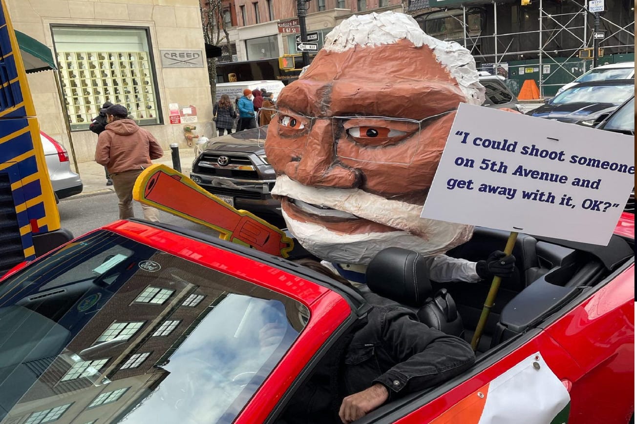 19 ડિસેમ્બરના રોજ, ન્યૂ યોર્ક સિટીની એક ભરચક અને શોરબકોરવાળી શેરીમાં એક અસાધારણ દૃશ્ય જોવા મળ્યું જેણે દરેકનું ધ્યાન આકર્ષિત કર્યું અને ગંભીર ચર્ચાને વેગ આપ્યો. બન્યું એવું કે ફિફ્થ એવન્યુ (રોડ) પર ભારતના વડાપ્રધાન નરેન્દ્ર મોદી જેવી વિશાળ કઠપૂતળી લાલ કારમાં સવાર થઈ જઇ રહી હતી. કઠપૂતળીએ એક બેનર પકડ્યું હતું જેમાં લખ્યું હતું, "હું ફિફ્થ એવન્યુ પર કોઈને ગોળી મારી શકું છું અને હજુ પણ બચી શકું છું... ઠીક છે?"