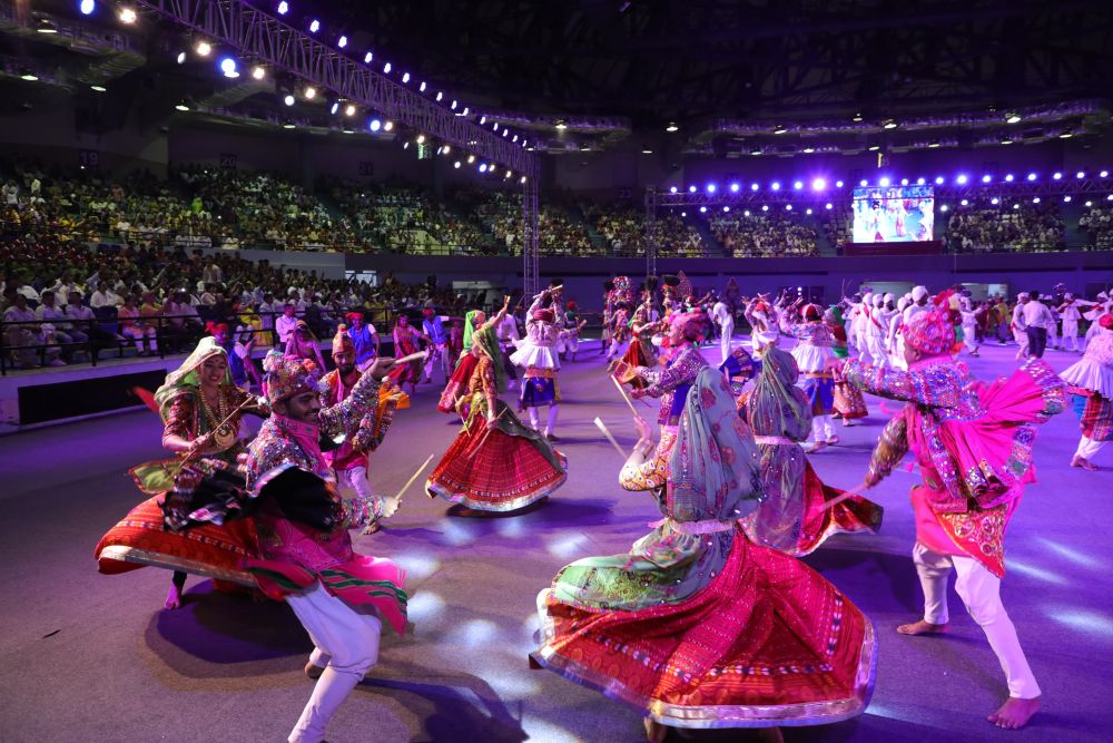સુરતના ઈન્ડોર સ્ટેડિયમ-અઠવાલાઈન્સ ખાતે 'એક ભારત, શ્રેષ્ઠ ભારત'ની થીમ પર આયોજિત ભવ્ય સાંસ્કૃતિક કાર્યક્રમ / માહિતી વિભાગ, ગુજરાત
