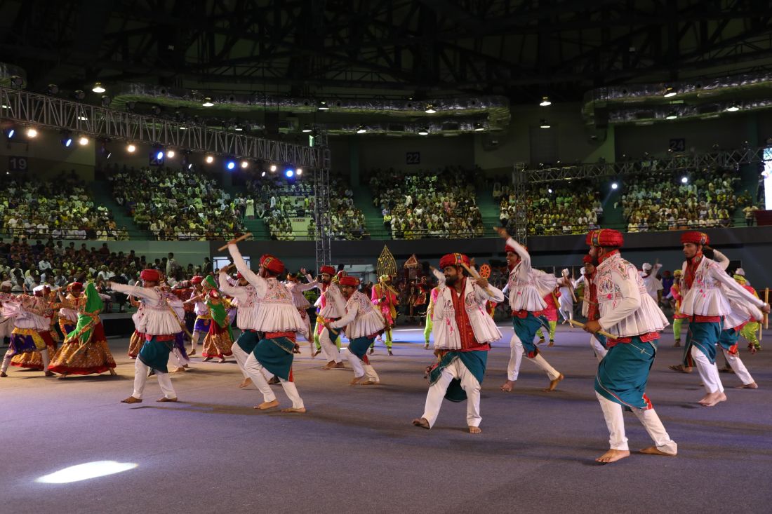 સુરતના ઈન્ડોર સ્ટેડિયમ-અઠવાલાઈન્સ ખાતે 'એક ભારત, શ્રેષ્ઠ ભારત'ની થીમ પર આયોજિત ભવ્ય સાંસ્કૃતિક કાર્યક્રમ / માહિતી વિભાગ, ગુજરાત.