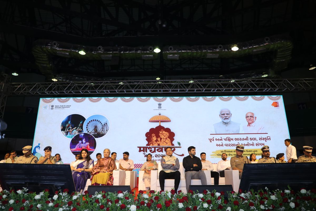 પોરબંદર જિલ્લાના માધવપુર ખાતે તા.૬ થી ૧૦ એપ્રિલ સુધી માધવપુરનો ભાતીગળ મેળો યોજાશે, જેમાં સાંસ્કૃતિક વિરાસતો અને ધરોહરોને જોવા, જાણવા અને માણવાની તક મળશે, ત્યારે સુરતવાસીઓ પણ રાજ્યની આગવી સાંસ્કૃતિક પરંપરાથી અવગત થાય એ માટે સુરતના ઈન્ડોર સ્ટેડિયમ-અઠવાલાઈન્સ ખાતે 'એક ભારત, શ્રેષ્ઠ ભારત'ની થીમ પર આયોજિત ભવ્ય સાંસ્કૃતિક કાર્યક્રમમાં પૂર્વોત્તર રાજ્યોના ૨૦૦ તથા ગુજરાતના ૨૦૦ કલાકારોએ એક એકથી ચડિયાતી રંગારંગ પ્રસ્તુતિઓ રજૂ કરી હતી.