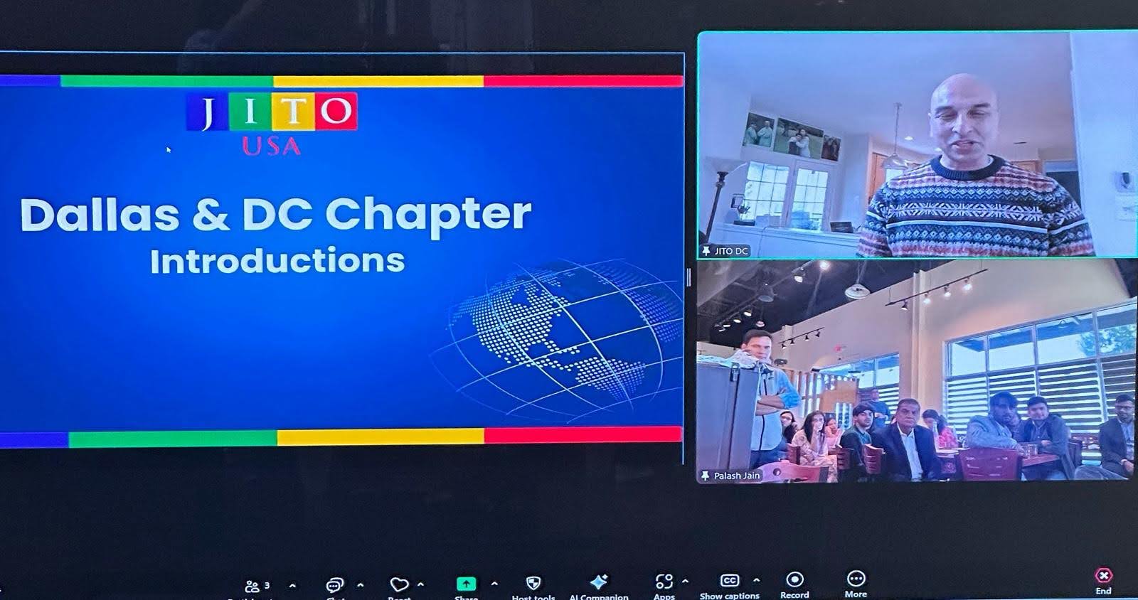 જૈન ઇન્ટરનેશનલ ટ્રેડ ઓર્ગેનાઇઝેશન (JITO) ઇવેન્ટના ડીસી અને ડલ્લાસ ચેપ્ટર્સ. / JITOઆ કાર્યક્રમની શરૂઆત આધ્યાત્મિક આહ્વાન નવકાર મંત્રના પાઠ સાથે થઈ હતી, ત્યારબાદ જીતો યુએસએના અધ્યક્ષ સુશીલ જૈન અને સચિવ સપન દોશીએ પ્રારંભિક સંબોધન કર્યું હતું. સહભાગીઓએ તેમના વ્યાવસાયિક અનુભવો, આકાંક્ષાઓ અને વિકાસની તકો શેર કરી, સહયોગ અને પ્રેરણાના વાતાવરણને પ્રોત્સાહન આપ્યું.