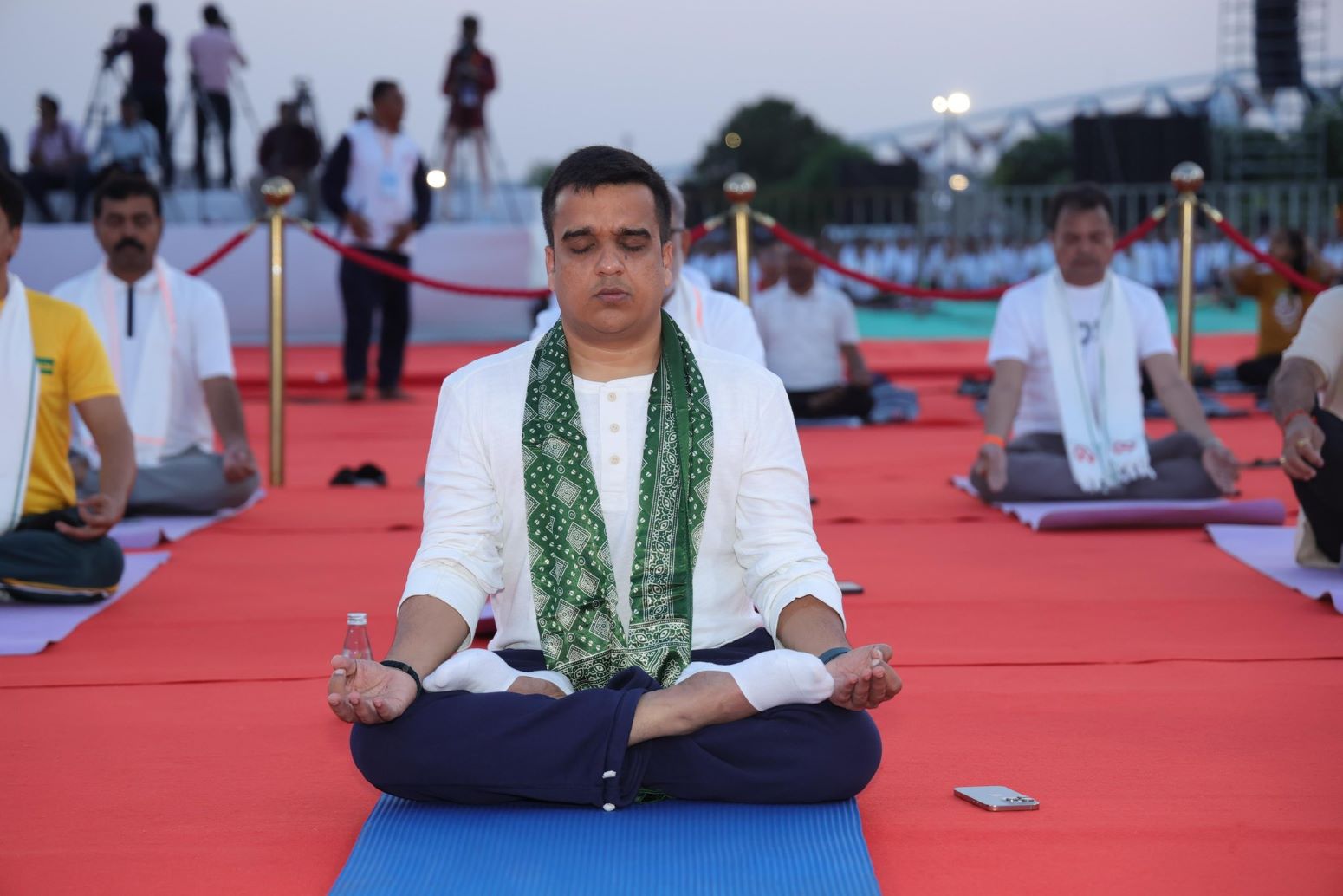 આ પ્રસંગે યુવા, સાંસ્કૃતિક પ્રવૃત્તિઓ તથા ગૃહ વિભાગના રાજ્ય મંત્રીશ્રી હર્ષ સંઘવીએ કહ્યું કે, મુખ્યમંત્રી શ્રી ભૂપેન્દ્ર પટેલના અધ્યક્ષસ્થાને 'સ્વસ્થ ગુજરાત, મેદસ્વિતા મુક્ત ગુજરાત' અભિયાન અંતર્ગત યોગ શિબિરનું આયોજન થયું છે. આ અભિયાન અંતર્ગત આ વર્ષે આંતરરાષ્ટ્રીય યોગ દિવસ પર ગુજરાતના તમામ જિલ્લાઓ એક નવો ઇતિહાસ બનાવવા તરફ આગળ વધી રહ્યા છે.