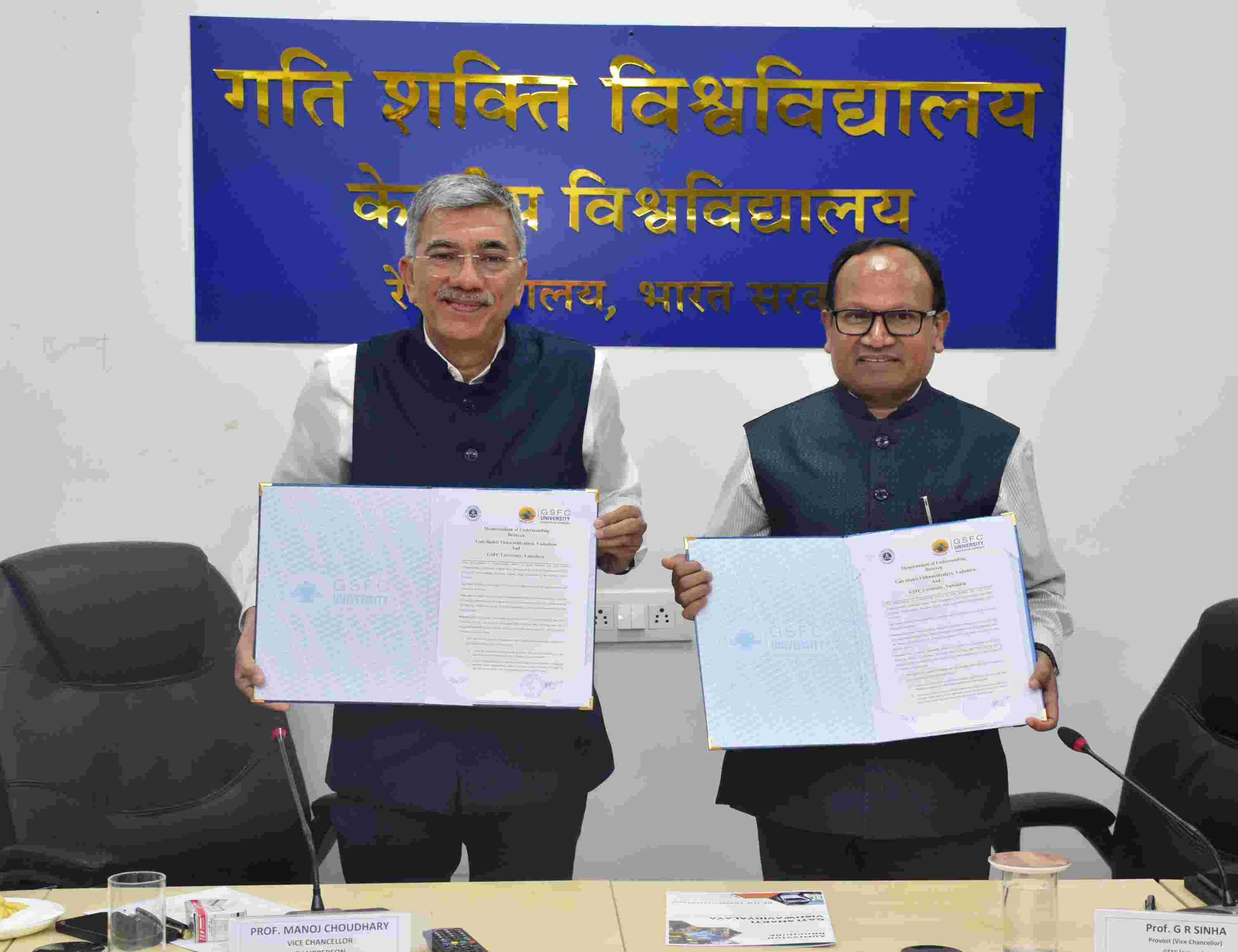 વર્ષ 2015માં શરૂ કરાયેલ જી.એસ.એફ.સી.યુનિવર્સીટી અને કેન્દ્રીય ગતિ શક્તિ વિદ્યાલય વચ્ચે વડોદરાના સર્વાંગી વિકાસ માટે એમ.ઓ.યુ. પર સંસ્થાના વડાઓએ હસ્તાક્ષર કર્યા હતા.અને એક બીજાને શુભેચ્છા આપી હતી.