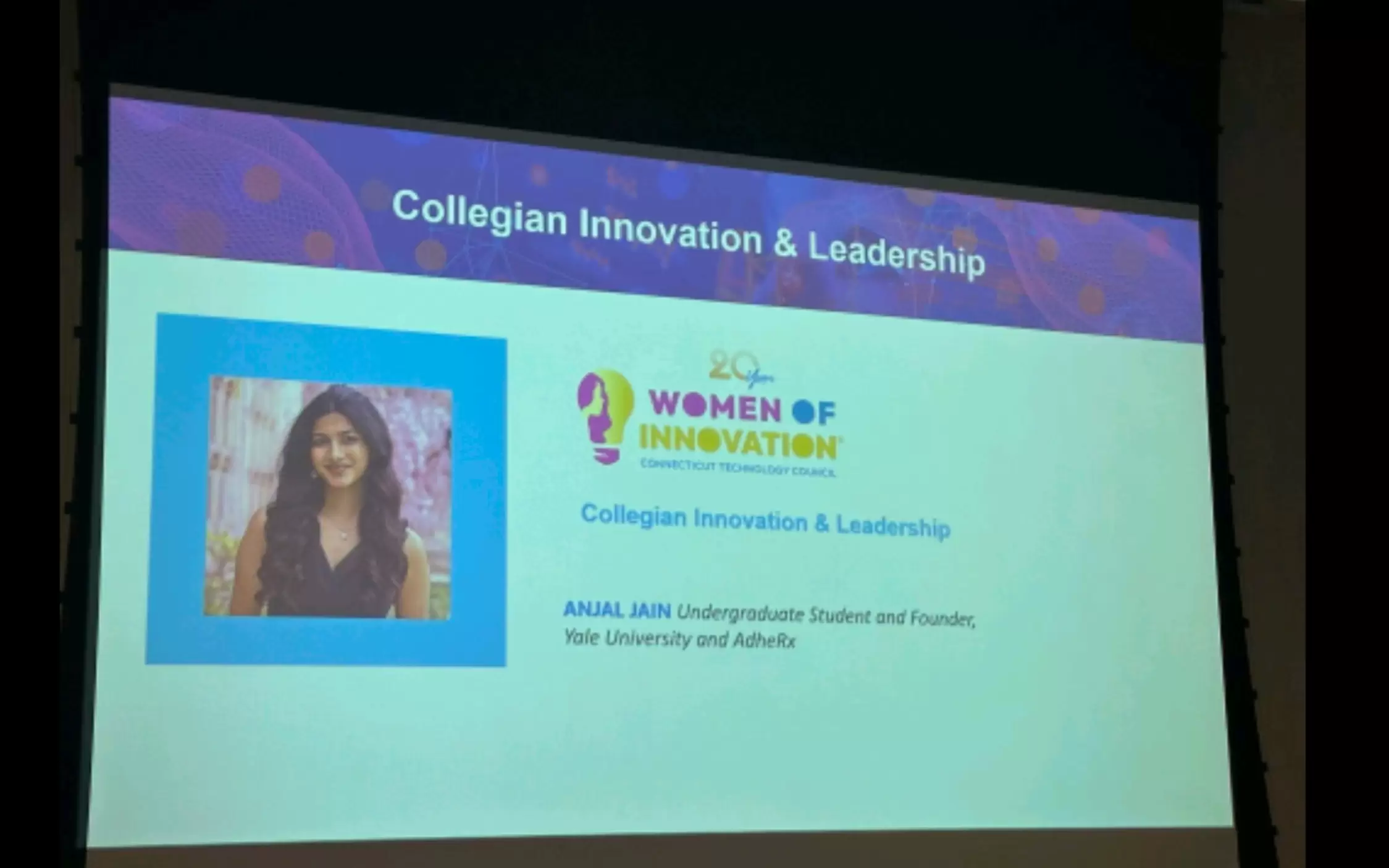 એન્જલ જૈન, ભારતીય મૂળના યેલ યુનિવર્સિટીના અંડરગ્રેજ્યુએટ વિદ્યાર્થી અને AdheRxના સ્થાપક, કનેક્ટિકટ ટેક્નોલોજી કાઉન્સિલ દ્વારા આયોજિત 20મા વાર્ષિક વિમેન ઓફ ઇનોવેશન એવોર્ડ્સમાં કોલેજિયન ઇનોવેશન એન્ડ લીડરશિપ એવોર્ડથી સન્માનિત થયા.
