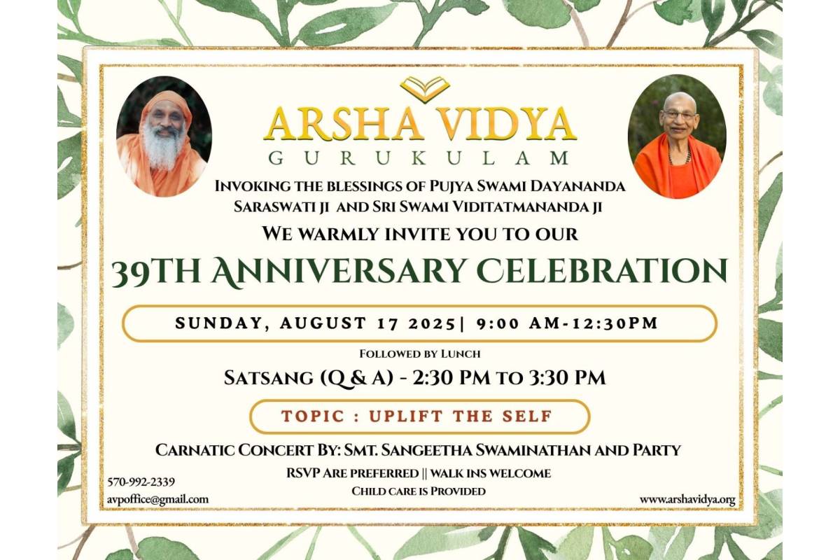 પેન્સિલવેનિયાના સેલર્સબર્ગમાં આવેલું આર્ષ વિદ્યા ગુરુકુલમ 17 ઓગસ્ટે તેની 39મી વર્ષગાંઠ ઉજવી રહ્યું છે.