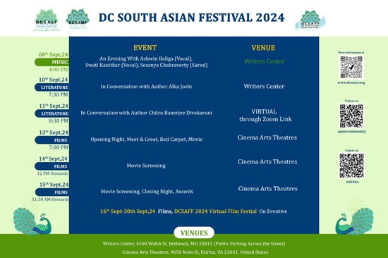 "અમે ખૂબ જ સફળ ડીસી સાઉથ એશિયન ફેસ્ટિવલ 2024 નું આયોજન કરવા માટે આતુર છીએ, જે ડીએમવી વિસ્તારના ઉત્સાહીઓ સાથે દક્ષિણ એશિયાના શ્રેષ્ઠ સાહિત્ય, સંગીત અને ફિલ્મો શેર કરવાની તક છે", તેમ ફેસ્ટિવલ ડિરેક્ટર મનોજ સિંહે જણાવ્યું હતું. વર્ષ 2024ની થીમ 'શાંતિ અને દયા સાથે આગળ વધવું' છે.