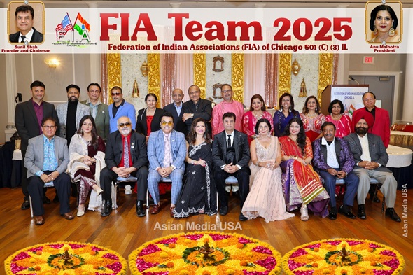 FIAના નવા બોર્ડ ઓફ એક્ઝિક્યુટિવ વાઇસ પ્રેસિડેન્ટ, સાથે સ્થાપક ચેરમેન સુનીલ શાહ, વર્તમાન પ્રમુખ પ્રતિભા જૈરાથ અને ચૂંટાયેલા પ્રમુખ અનુ મલ્હોત્રા. / Asian Media USA