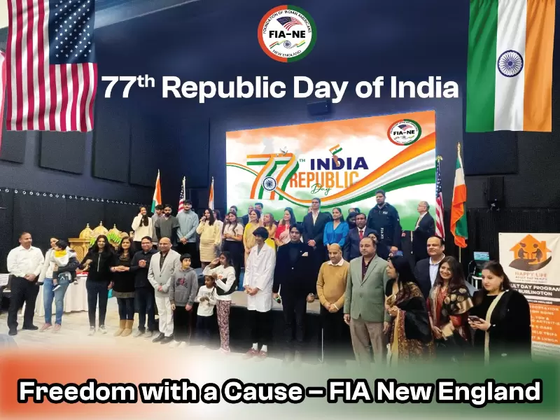 ન્યૂ ઈંગ્લેન્ડની ફાઉન્ડેશન ઓફ ઈન્ડિયન અમેરિકન્સ (FIA)એ મેસેચ્યુસેટ્સના બર્લિંગ્ટનમાં આવેલી એકેડમી ઓફ ક્રિએટિવ આર્ટ્સ ખાતે ભારતના ૭૭મા પ્રજાસત્તાક દિવસની ભવ્ય ઉજવણી કરી. આ કાર્યક્રમમાં ભારતના સ્વાતંત્ર્ય સંગ્રામના શહીદો તથા ભારતીય બંધારણના નિર્માતાઓને શ્રદ્ધાંજલિ આપવામાં આવી, જેમણે રાષ્ટ્રનો મજબૂત પાયો નાખ્યો હતો.