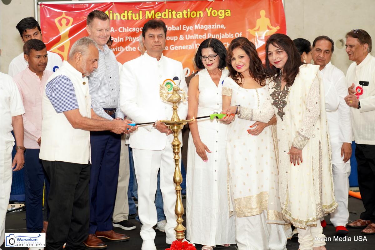 ફેડરેશન ઓફ ઇન્ડિયન એસોસિએશન્સ (એફઆઈએ) શિકાગોના સ્થાપક ચેરમેન સુનિલ શાહની આગેવાનીમાં, યોગ ગુરુ અનુ મલ્હોત્રા હેઠળ માઇન્ડફુલ મેડિટેશન યોગ (એમએમવાય) ના સહયોગથી, જૂન. 23 ના રોજ સામુદાયિક ભાવનાના જીવંત પ્રદર્શન સાથે આંતરરાષ્ટ્રીય યોગ દિવસની ઉજવણી કરવામાં આવી હતી. નેપરવિલે યાર્ડ ઇન્ડોર સ્પોર્ટ્સ કોમ્પ્લેક્સ ખાતે યોજાયેલા આ કાર્યક્રમમાં વિવિધ પશ્ચાદભૂના 1,000 થી વધુ સહભાગીઓની ઉત્સાહી ભીડ ઉમટી પડી હતી, જેઓ યોગ, આરોગ્ય અને સંવાદિતા માટેના તેમના જુસ્સામાં એક થયા હતા.