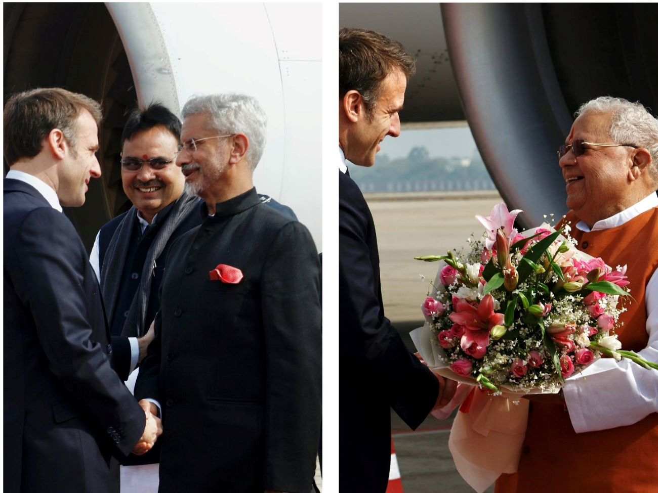 ભારતના MEA એ X પર એક પોસ્ટમાં જણાવ્યું હતું કે,“Bienvenue en Inde! ફ્રાન્સના રાષ્ટ્રપતિ @Emmanuel મેક્રોનનું રાજસ્થાનના રાજ્યપાલ @KalrajMishra  @DrSJaishankar અને રાજસ્થાનના CM @BhajanlalBjp દ્વારા ઉષ્માભર્યું સ્વાગત કરવામાં આવ્યું જ્યારે તેઓ ઐતિહાસિક શહેર જયપુર પહોંચ્યા હતા. રાષ્ટ્રપતિ મેક્રોન 75મા પ્રજાસત્તાક દિવસની ઉજવણીમાં મુખ્ય અતિથિ છે”