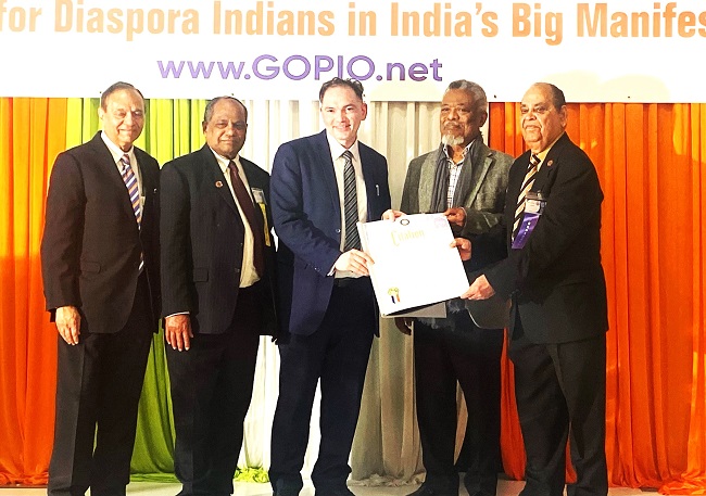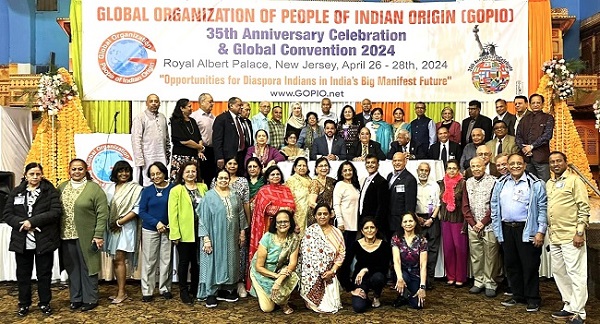 ગ્લોબલ ઓર્ગેનાઇઝેશન ઓફ પીપલ ઓફ ઇન્ડિયન ઓરિજિન (જીઓપીઆઈઓ) એ 26 થી 28 એપ્રિલ દરમિયાન રોયલ આલ્બર્ટ પેલેસ, ફોર્ડ્સ, ન્યૂ જર્સી ખાતે તેની 35મી વર્ષગાંઠની ઉજવણી કરી હતી. આ પરિષદ ભારતીય ડાયસ્પોરાની ભૂમિકાને ધ્યાનમાં રાખીને સંવાદાત્મક સત્રો સાથે ભારતના વર્તમાન અને ભવિષ્ય પર કેન્દ્રિત હતી. આ પરિષદ દરમિયાન, 'ભારતના વિશાળ ભવિષ્યમાં ભારતીય ડાયસ્પોરા માટે તકો "વિષય સાથે મહત્વાકાંક્ષી ભવિષ્યને સાકાર કરવામાં ડાયસ્પોરાને મદદ કરવા અંગે ચર્ચા કરવામાં આવી હતી. પરિષદમાં સામાન્ય સભા દ્વારા ચાર ઠરાવો પસાર કરવામાં આવ્યા હતા, જેમાં મુખ્ય એક ઓવરસીઝ સિટીઝન ઓફ ઇન્ડિયા (ઓસીઆઈ) કાર્ડ ધારકો માટે સંપૂર્ણ બેવડી રાષ્ટ્રીયતાની માંગ હતી.